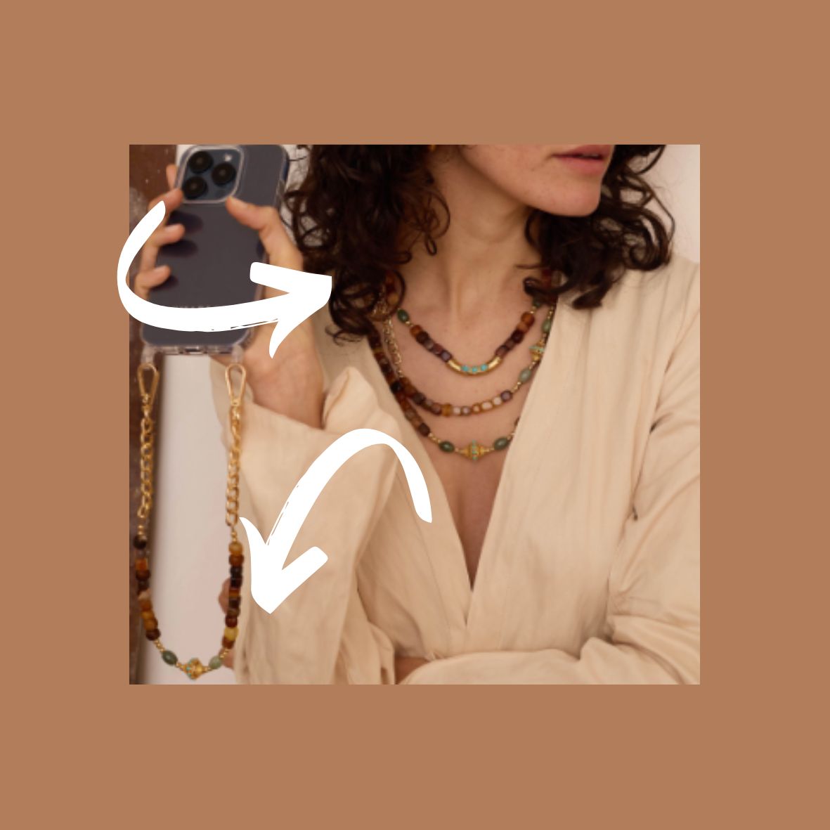 Il est vrai, certaines chaines de téléphone ressemblent à de vrais bijoux. Alors, en effet, pourquoi pas oser la porter en collier?! On y voit que du feu ... !