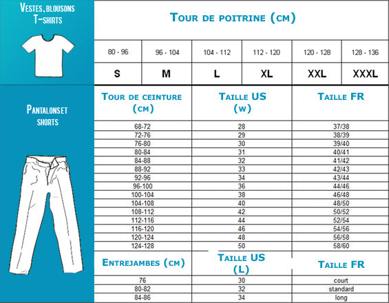 Se référer dans la mesure du possible au guide des tailles ci-contre en cas de doute ou d'hésitation.